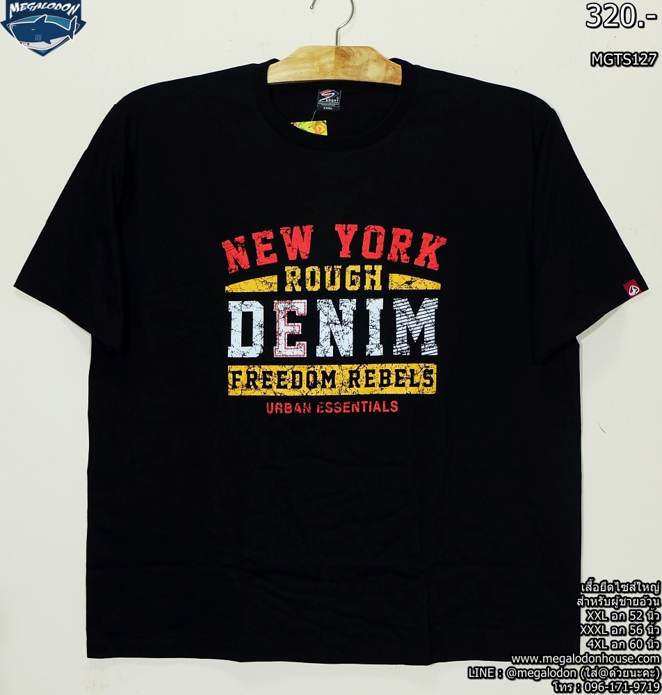 320 บาท! เสื้อยืดคอกลมสีดำ สกรีน New York Denim ไซส์ใหญ่ XXXL MGTS127