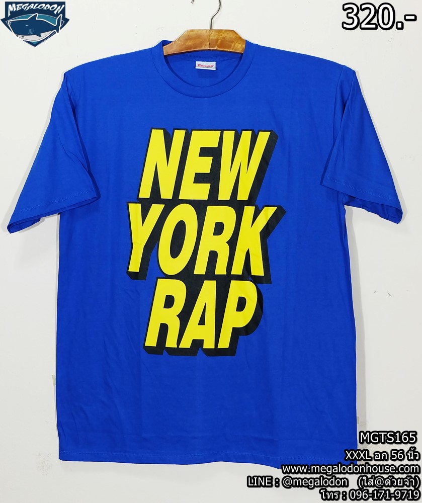 320 บาท! เสื้อยืดคอกลมสีน้ำเงิน สกรีน New York RAP ไซส์ใหญ่ XXXL