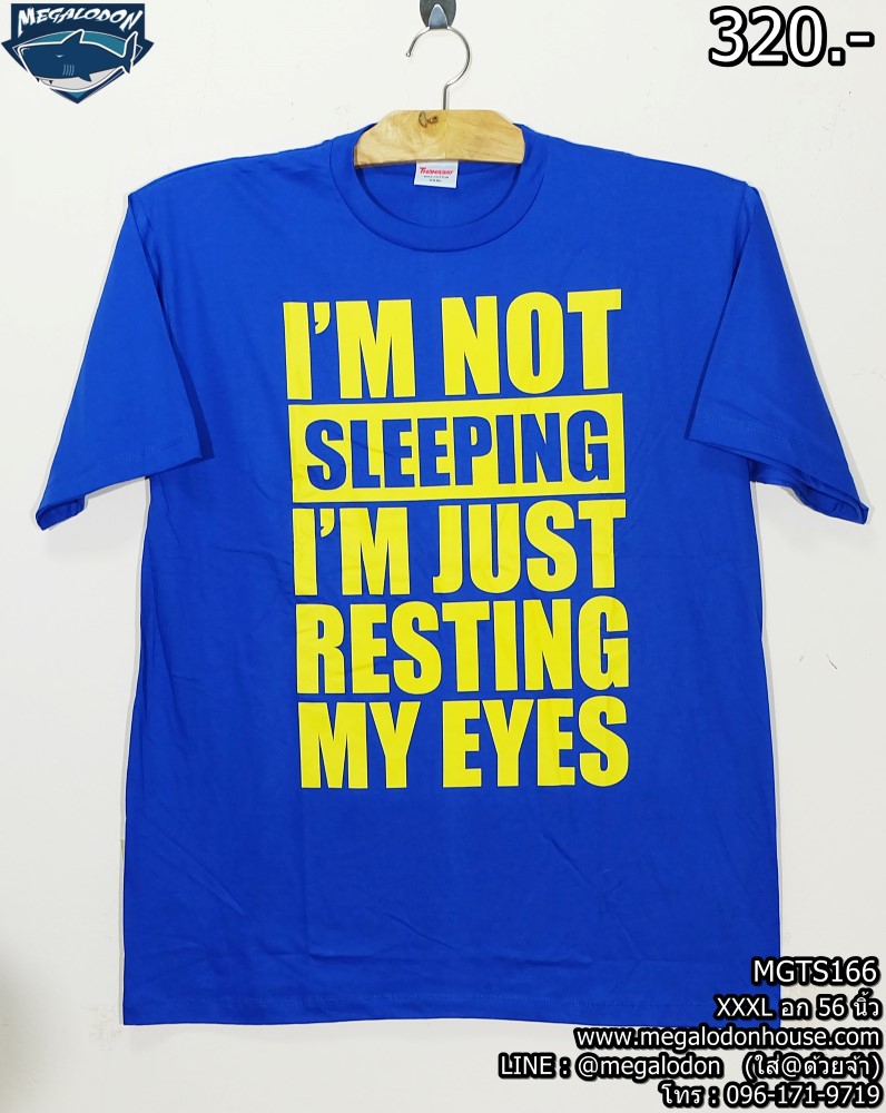 320 บาท! เสื้อยืดคอกลมสีน้ำเงิน สกรีน I’M NOT SLEEPING ไซส์ใหญ่ XXXL