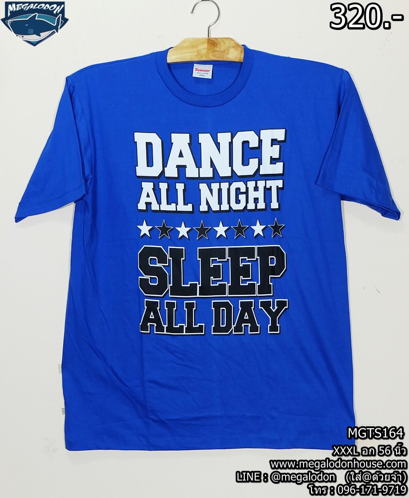 320 บาท! เสื้อยืดคอกลมสีน้ำเงิน สกรีน Dance All Night Sleep All Day ไซส์ใหญ่ XXXL