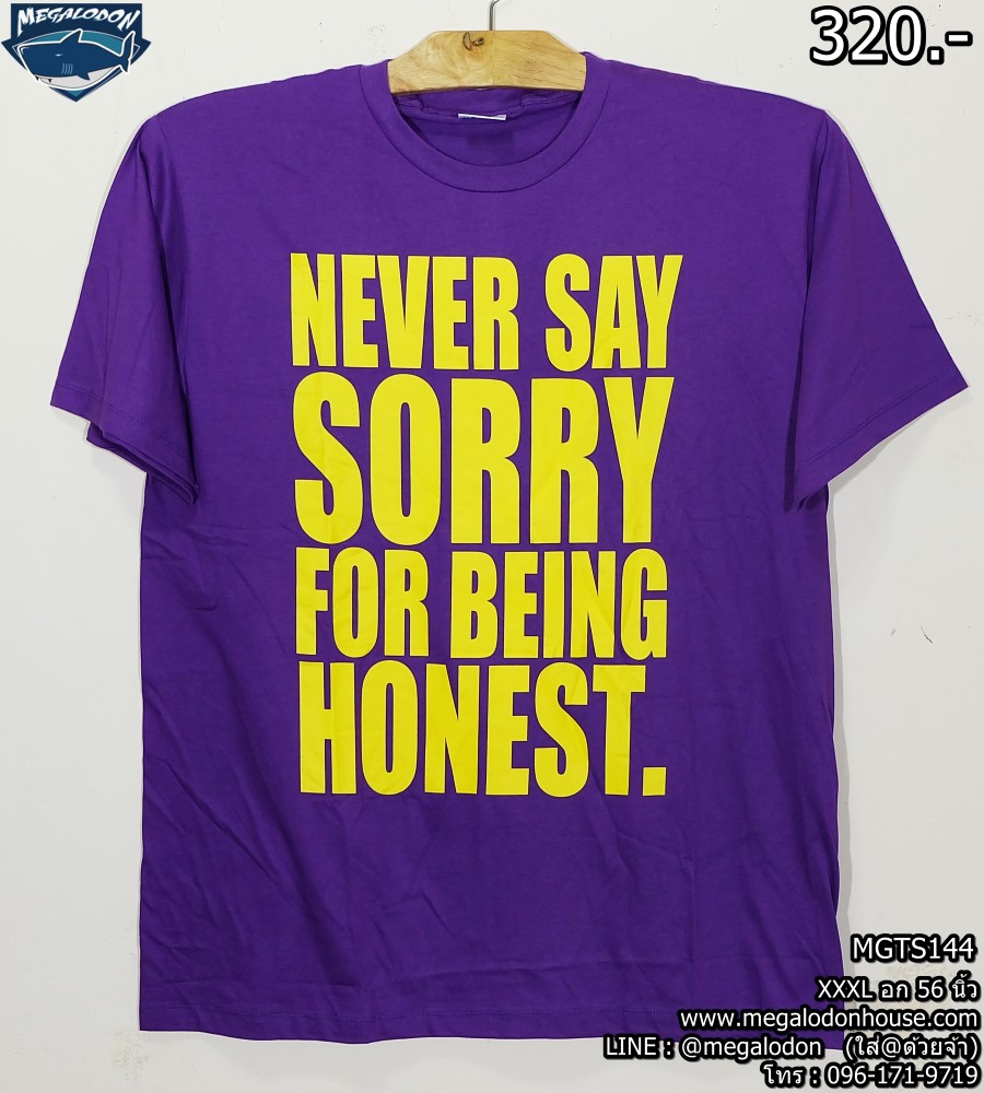 320 บาท! เสื้อยืดคอกลมสีม่วง สกรีน Never Say Sorry ไซส์ใหญ่ XXXL