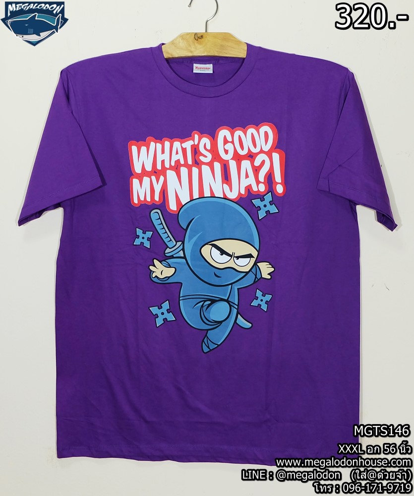 320 บาท! เสื้อยืดคอกลมสีม่วง สกรีนลายนินจา ไซส์ใหญ่ XXXL