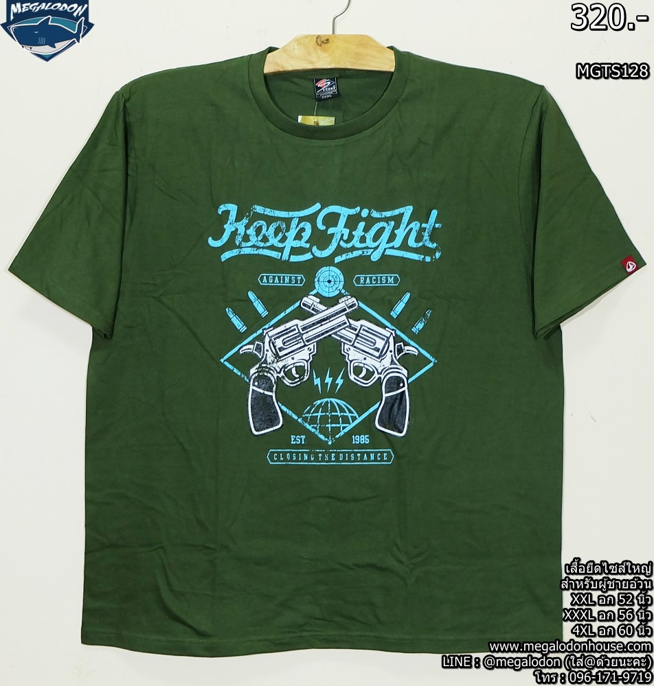 320 บาท! เสื้อยืดคอกลมสีเขียว สกรีน Keep Fight ไซส์ใหญ่ XXXL MGTS128