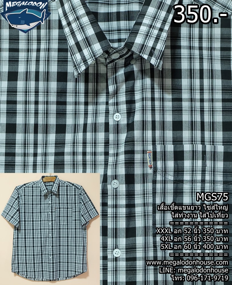 350 บาท! เสื้อเชิ้ตแขนสั้น ผู้ชายอ้วน ไซส์ใหญ่ ลายสก็อต อก 54-60 นิ้ว