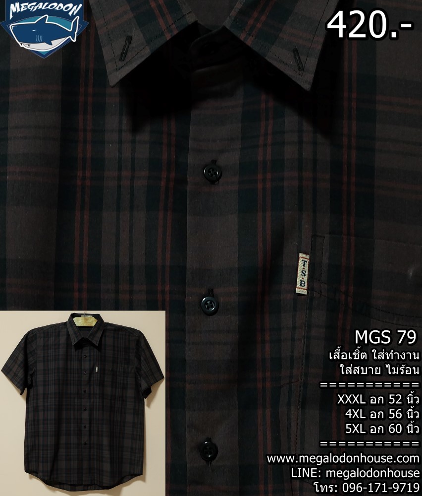 420 บาท! เสื้อเชิ้ตลายสก็อตแขนสั้น ผู้ชายอ้วน ไซส์ใหญ่ อก 52-60 นิ้ว