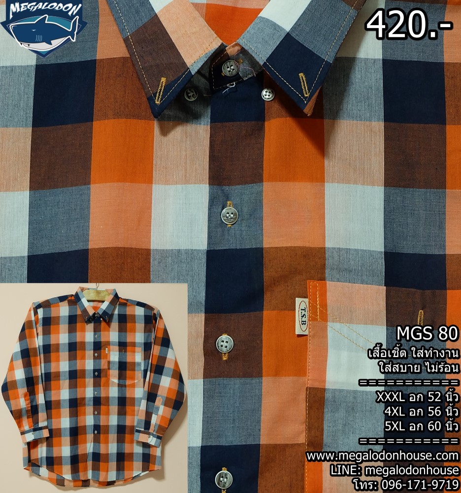 420 บาท! เสื้อเชิ้ตลายสก็อตแขนยาว ผู้ชายอ้วน ไซส์ใหญ่ อก 52-60 นิ้ว