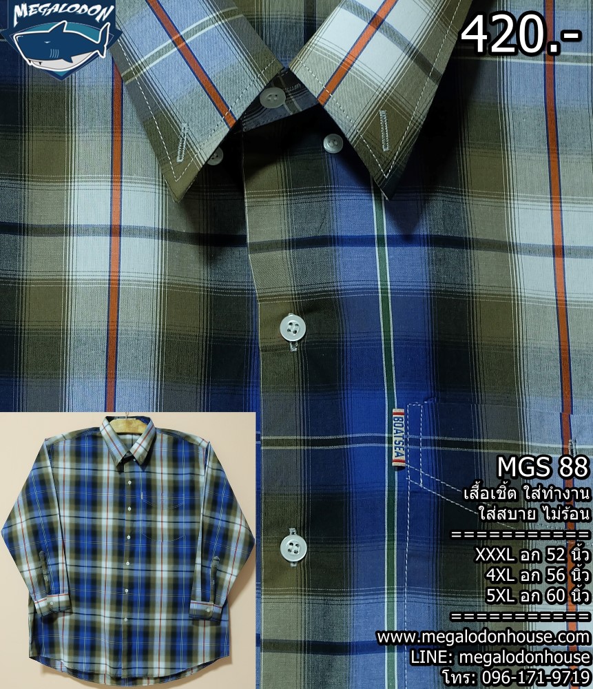 420 บาท! เสื้อเชิ้ตลายสก็อต แขนยาว ผู้ชายอ้วน ไซส์ใหญ่ อก 52-60 นิ้ว