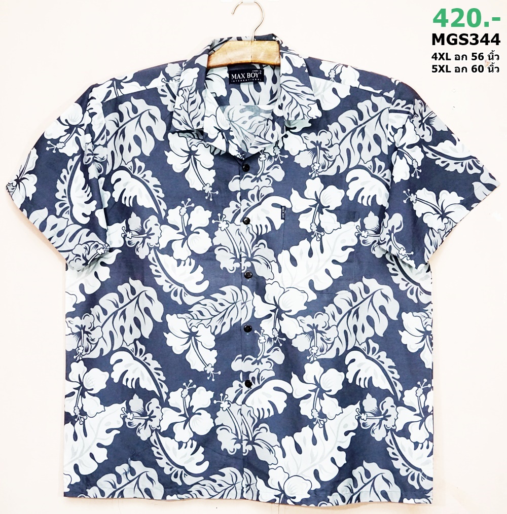 420 บาท! เสื้อเชิ้ตแขนสั้นผู้ชายไซส์ใหญ่ ผู้ชายอ้วน สีเทาอมฟ้า ลายดอก เล่นสงกรานต์