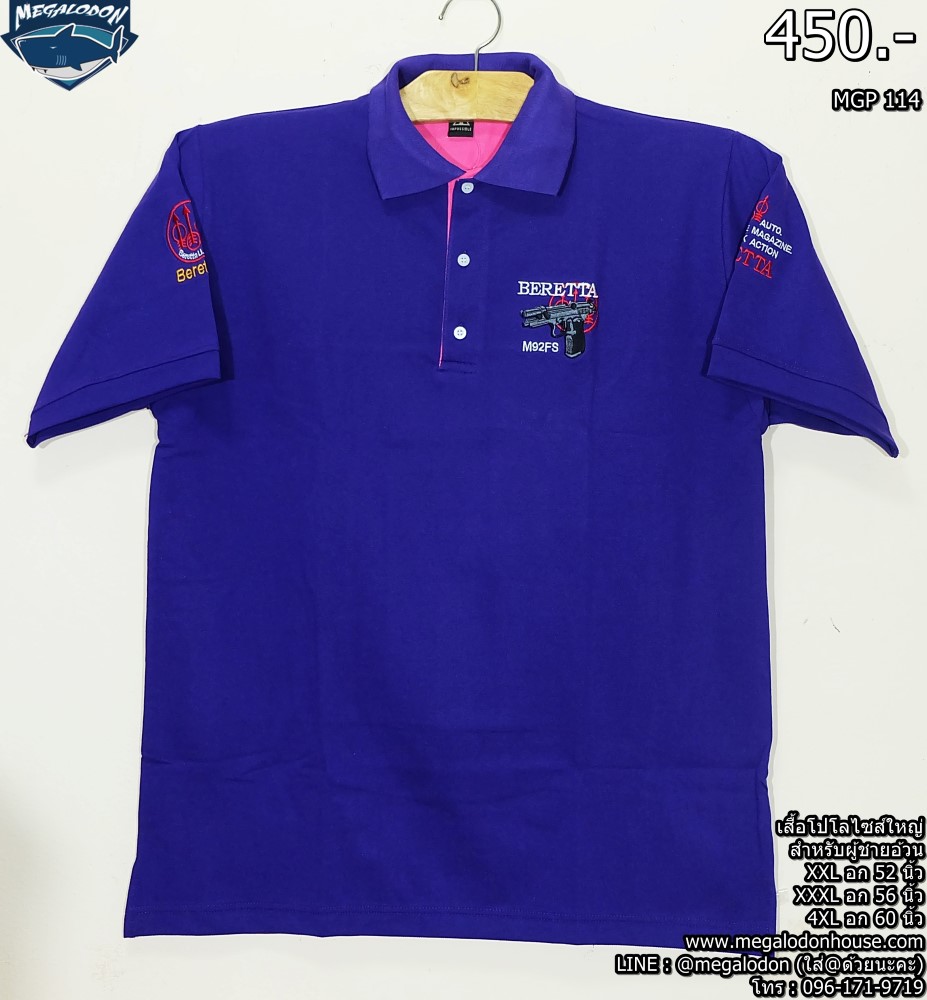 450 บาท! เสื้อโปโลคนอ้วน ลายปืน Beretta สีม่วง ไซส์ใหญ่ XXXL MGP114